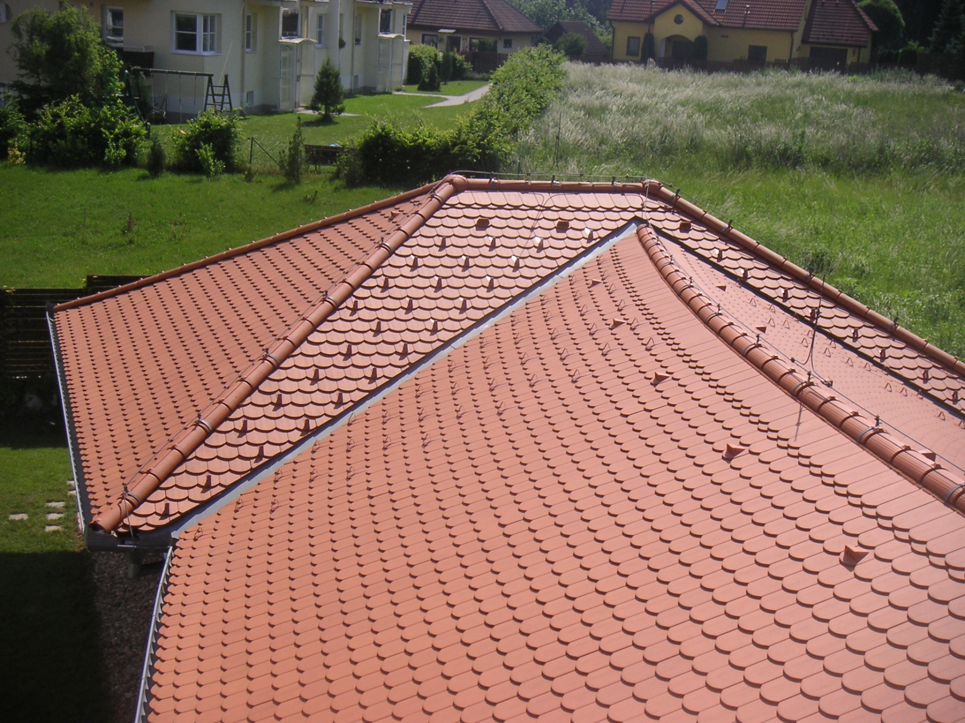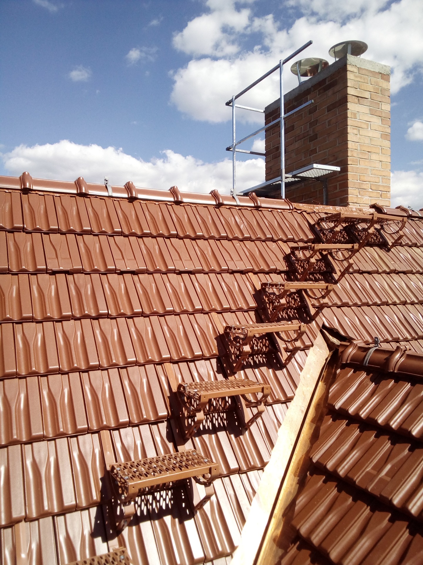 Montáž různých střešních doplňků. Patří sem např. komínové lávky, protisněhové zábrany, střešní výlezy. Montáž střešních oken.