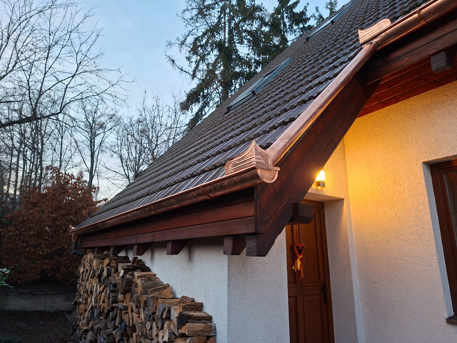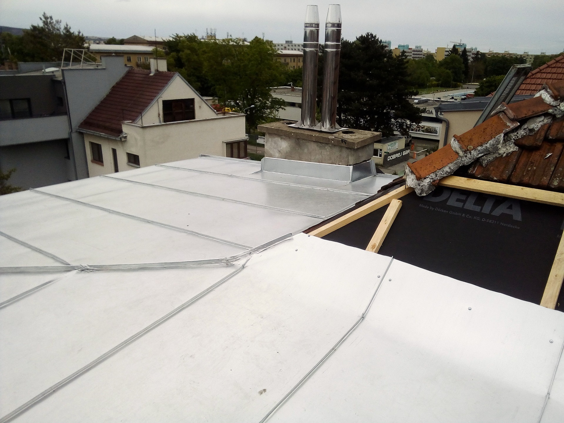 Oplechování různých částí střechy. Výměna starých plechových částí za nové (úžlabí, závětrné lišty, štítové lemování, atd..)